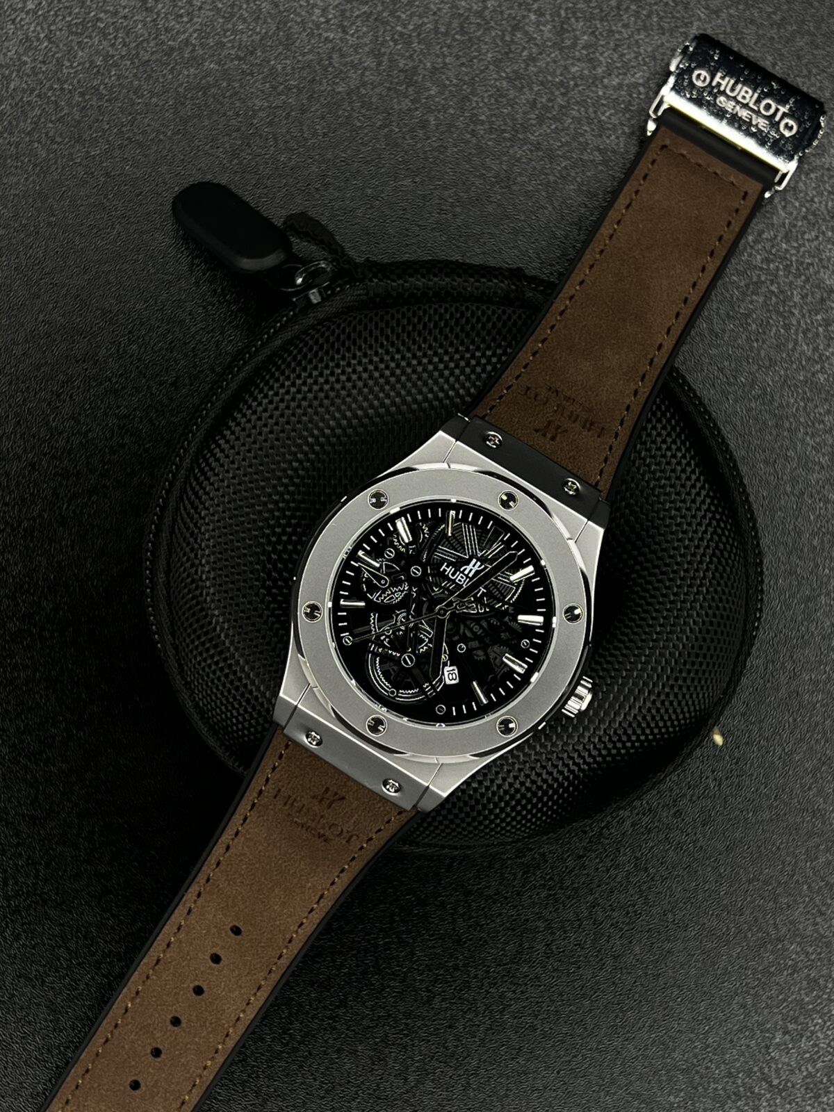 𝐇𝐮𝐛𝐥𝐨𝐭 Big Bang Spider Edition Artificial Leather Dark Brown Belt And Black Dial