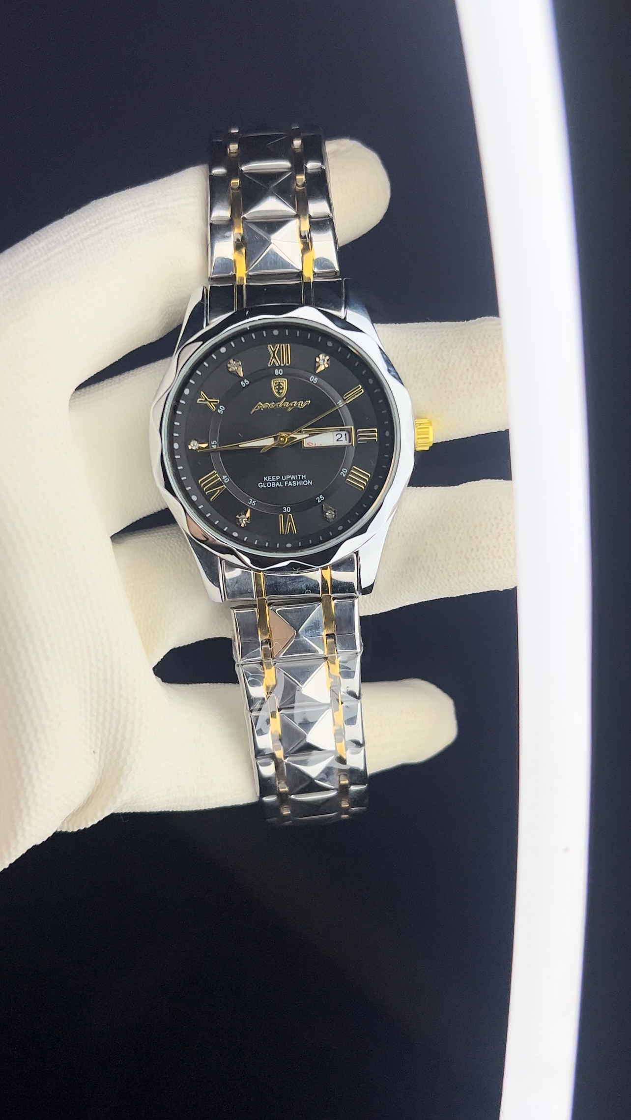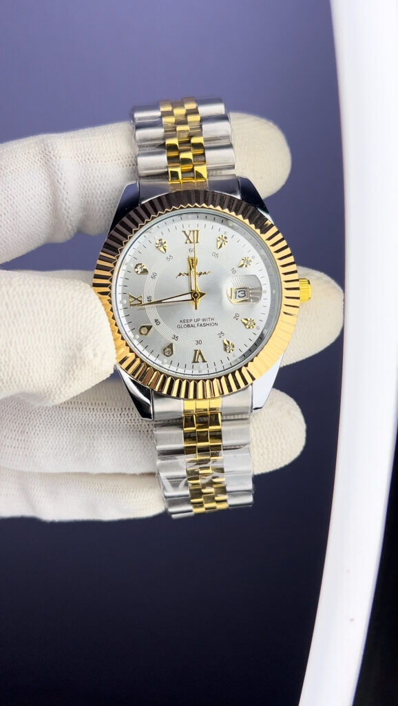 POEDAGAR 910 Luxury Luminous Quartz Men’s Watch – Tow-Tone White