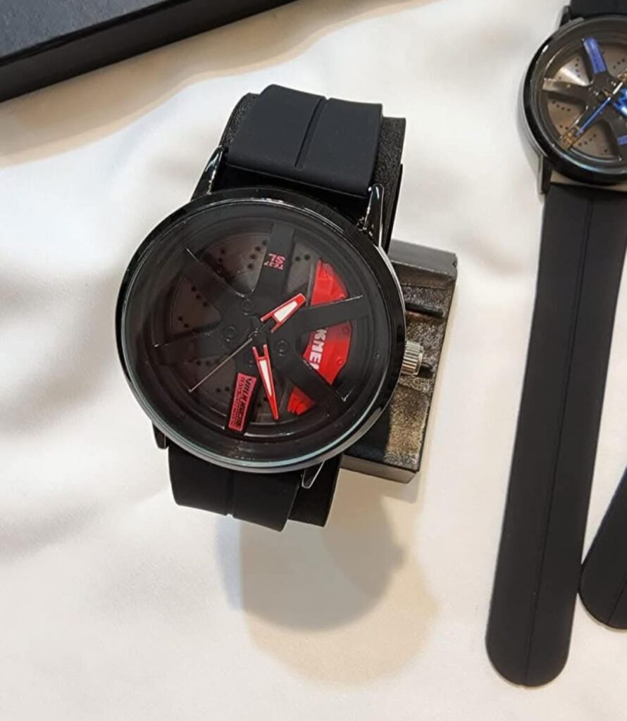 SKMEI SILICON BELT WATCH ROTATION WHEEL( Full Black and White)